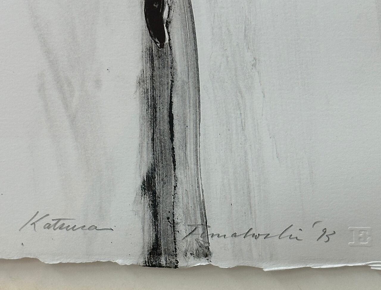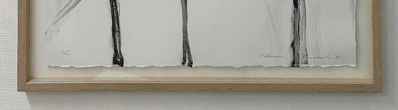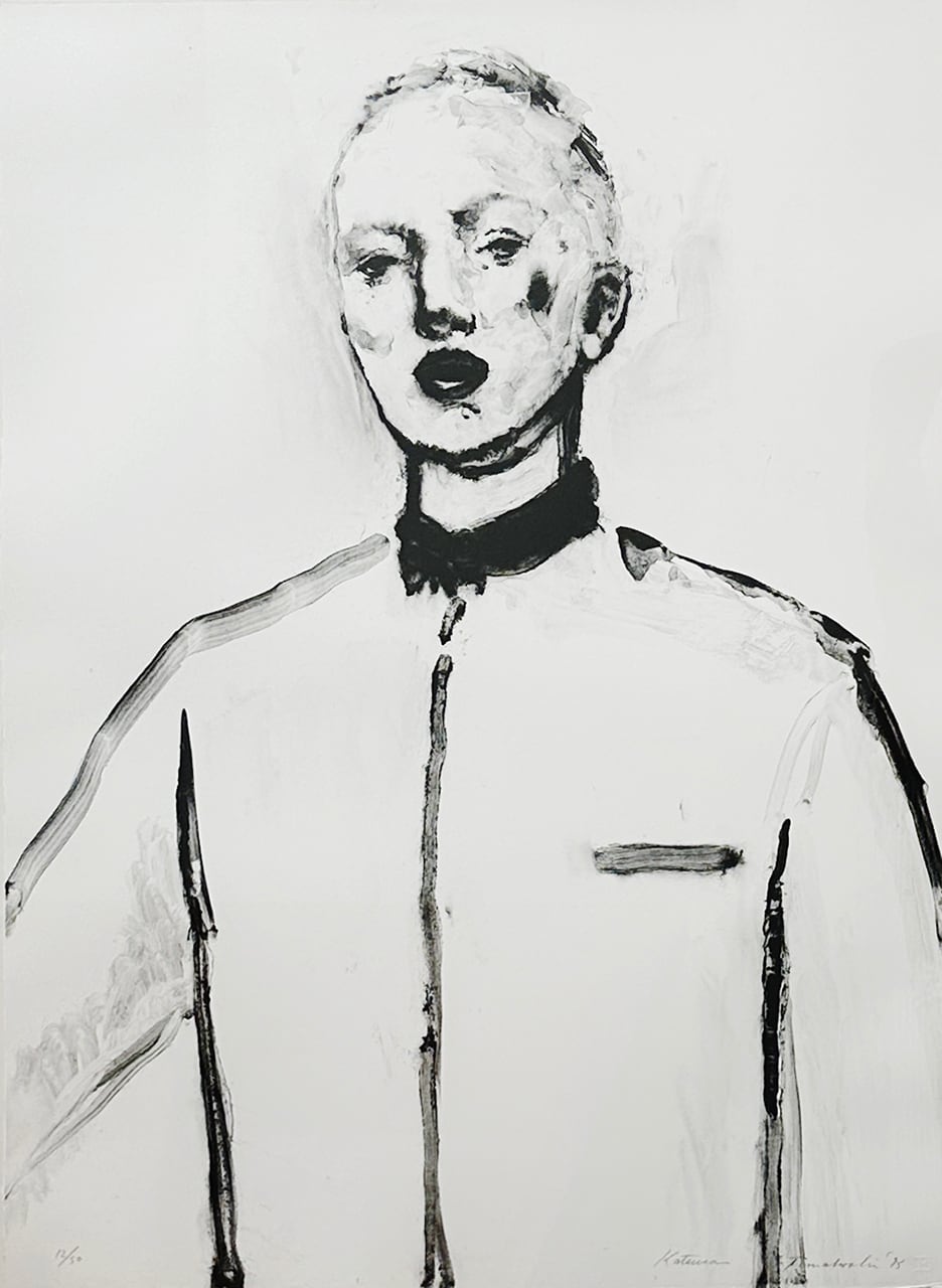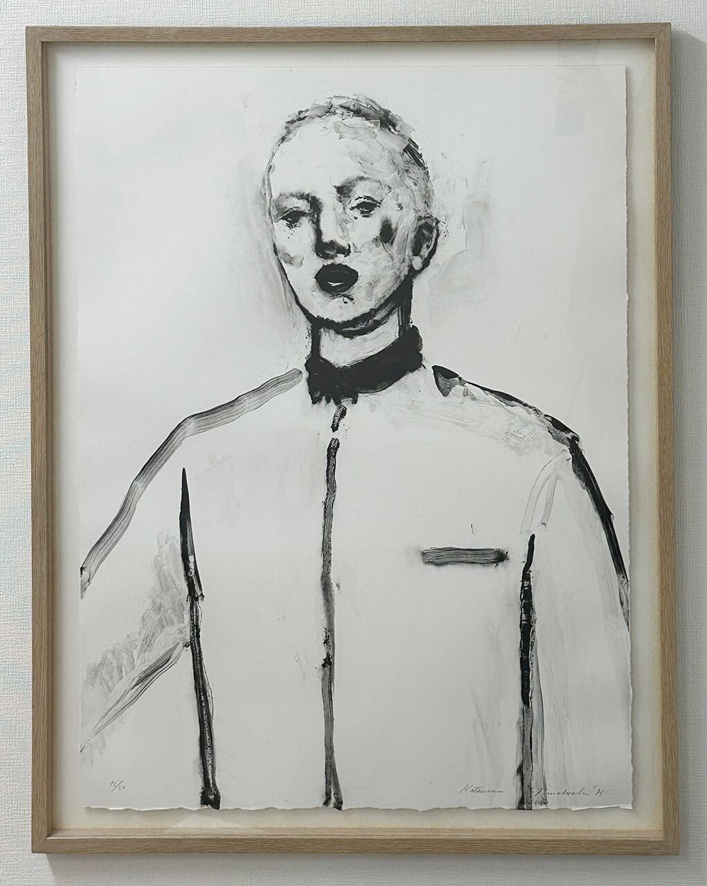 画面に大きく描かれた人物が静かな存在感を放つ舟越桂の版画作品。