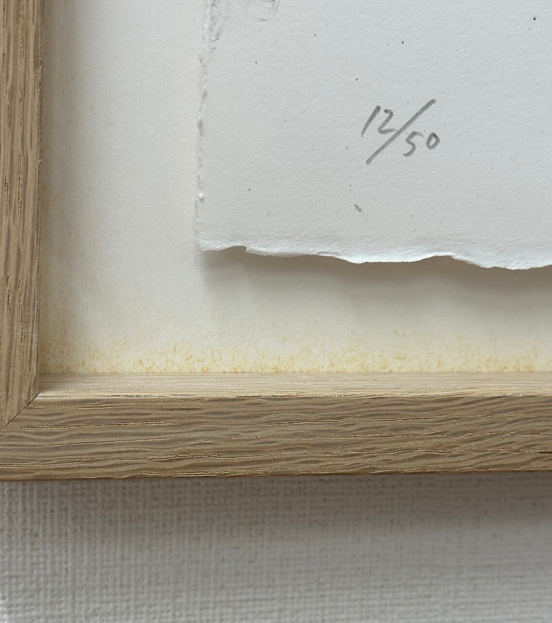作品のコンディションは良好ですが、額の内部の台紙には経年による黄ばみがございます。